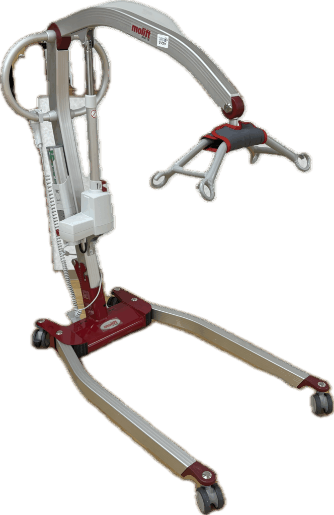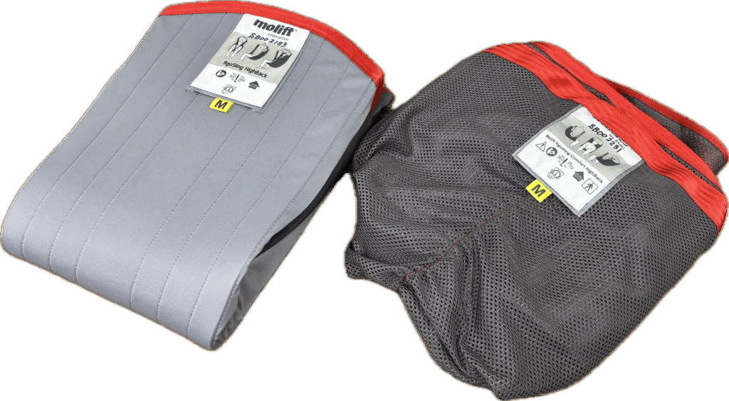 特徴として、移動式リフトなのに小さく折りたたむことが出来るので、車に積んだり、出先で利用しやすいものとなっております。また、アームが固く吊り上げの際に左右に振られづらい点や、軽い力で移動が可能な点などもあります。スリングについてもよく考えられており、操作しやすい様にガイドがついていたり、真ん中に目印がついているので体に合わせやすい点、脚分離型はしっかりした素材で座位姿勢が整いやすい点などもあります。