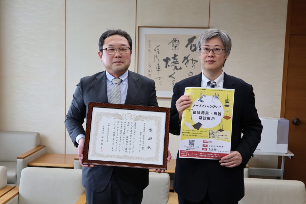 令和8年3月26日(木)、伊達市ノーリフティング普及推進事業における福祉用具・機器の常設展示に対して、伊達市より感謝状をいただきました。