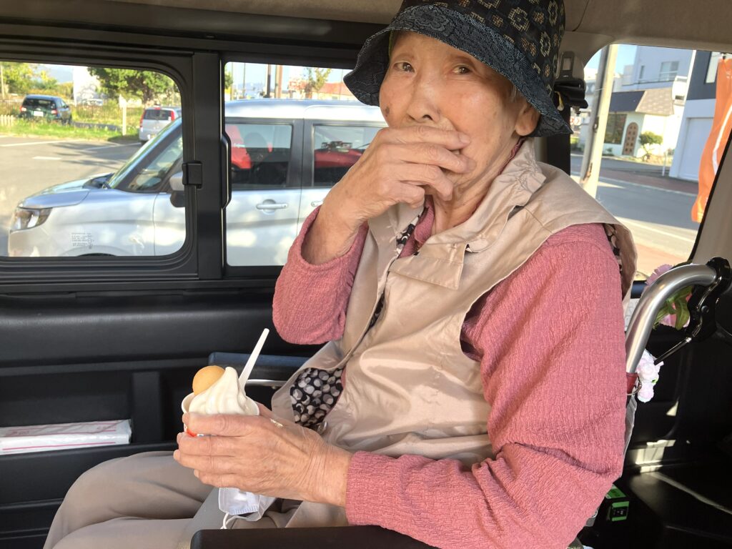 車内でソフトクリームを食べてお出かけを楽しんでいただきました。