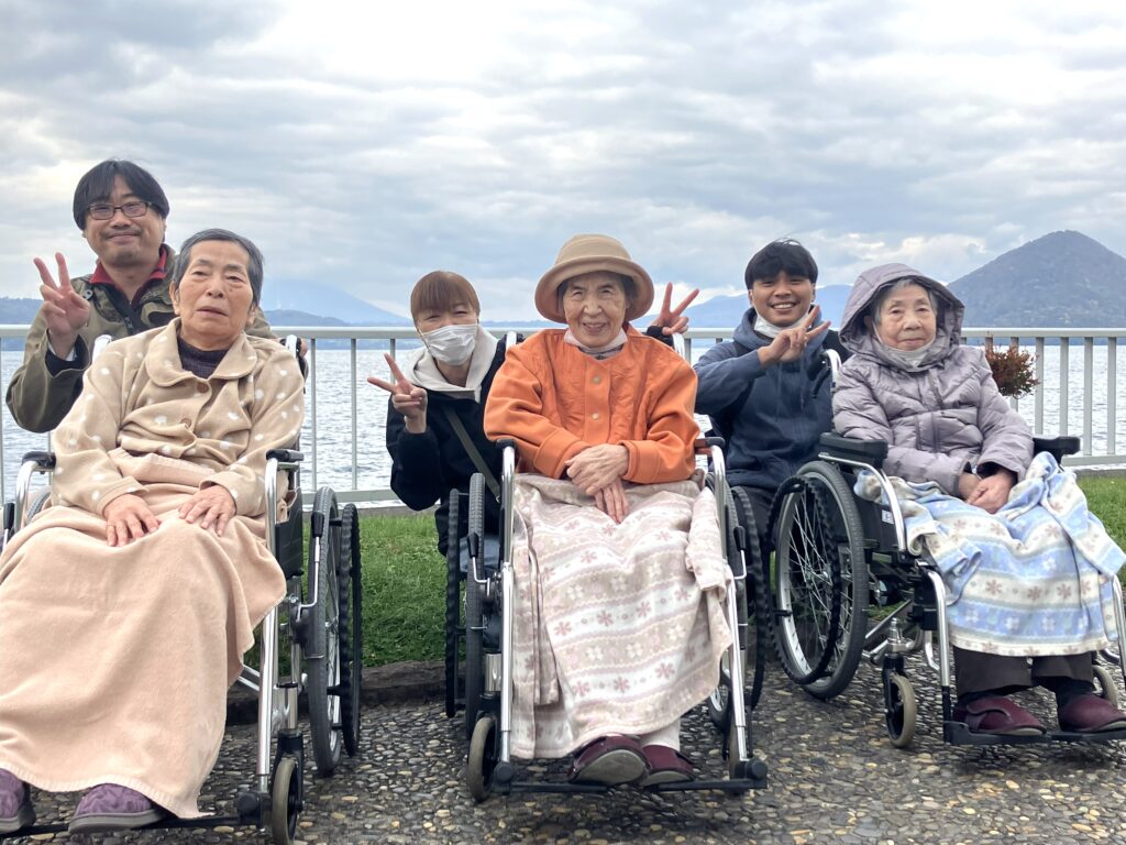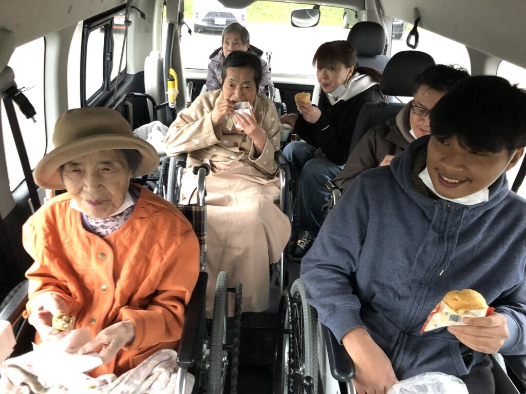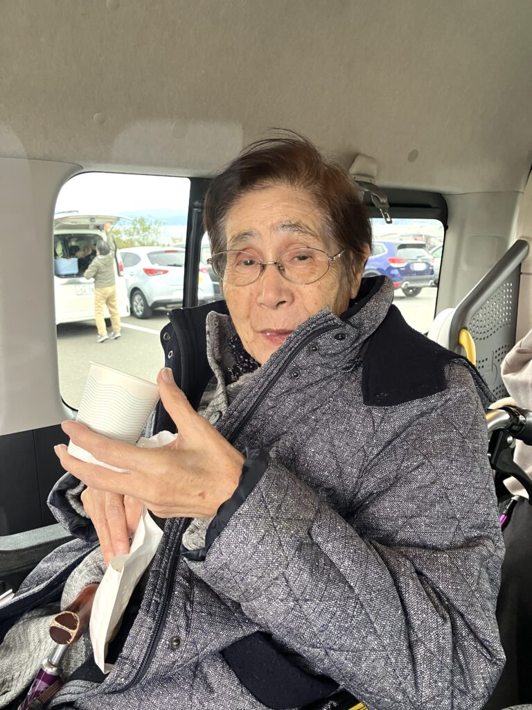 10月22日、4Fの利用者様と有珠の善光寺、洞爺湖畔に行ってきました。急に気温が下がってきたので寒さ対策をし、体調を崩さないよう注意しながらのお出かけとなりました。大分色づいてきた木々を楽しみながら、あげいもやシュークリームなどを食べてお出かけを楽しんでいただきました。
