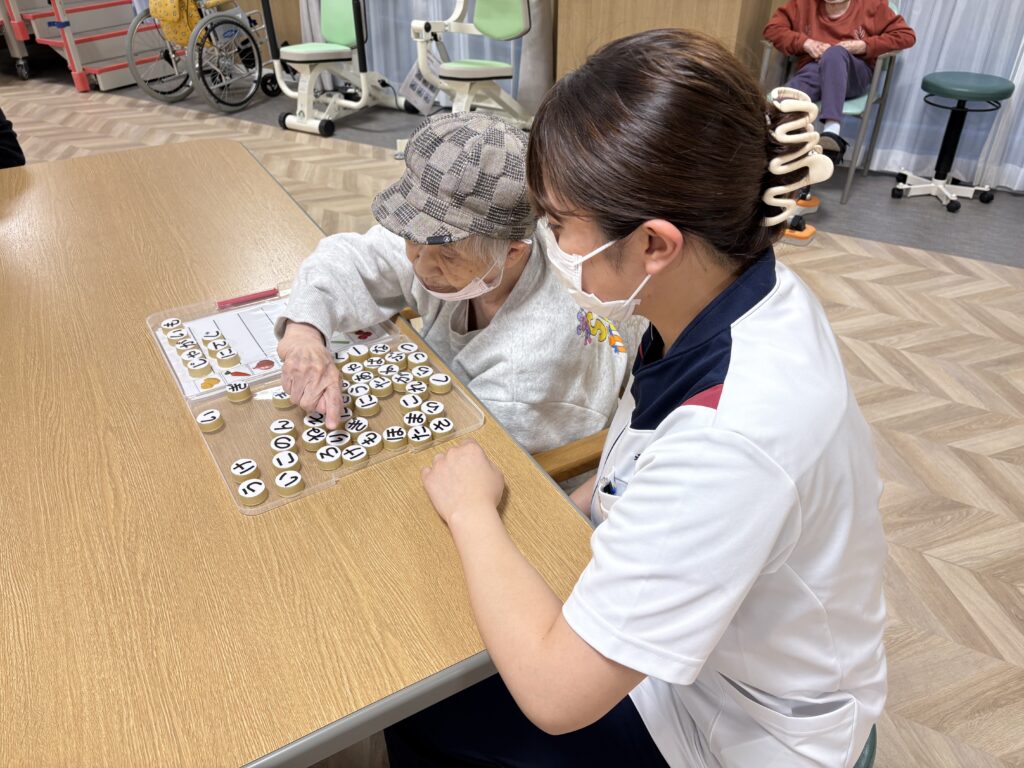 リハビリでは、体を動かす運動だけではなく、「脳トレ(頭の体操)」を楽しく行い、頭の中から元気になり、活気ある生活に繋がるよう様々なプログラムを行っています。